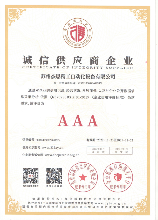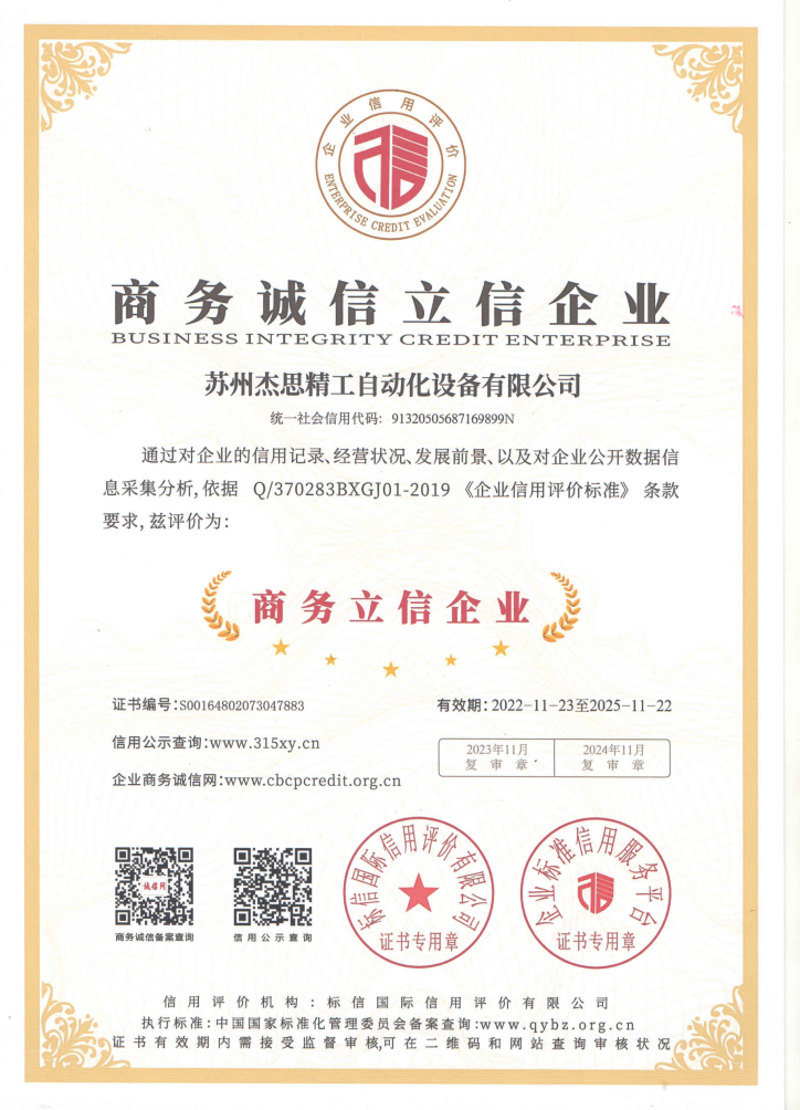 蘇州杰思精工自動化設備有限公司本著“高質量,優服務,求發展”的精神,